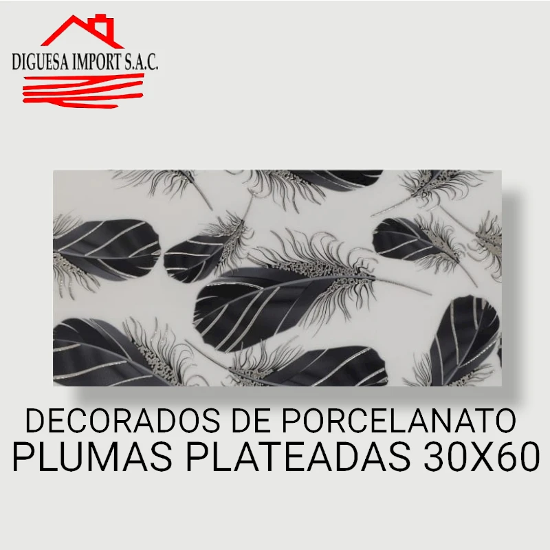 DECORADO DE PORCELANATO - PLUMAS PLATEADAS 30X60